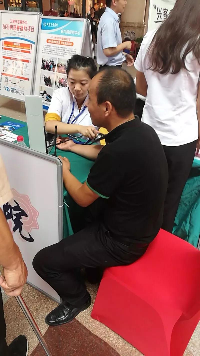 据悉,本次活动共计进行十天,从8月17日至8月26日,邀请了天津各区县各行各业的广场舞团队、爱好者同台竞技,通过市民喜闻乐见的广场舞形式,唤起人们对运动、健康的关注,提倡科学运动,快乐健身的理念。 比赛现场,百信医院的志愿者医护人员为广大的广场舞爱好者提供测血压、健康咨询、发放健康手册,免费妇科检查,结石检查以及眼科白内障检查等活动。 此次志愿活动针对的主要是参加广场舞大赛的老年人常见的高血压、结石预防、白内障、妇科等问题。医疗志愿者们在详细询问了患者的既往病史以及近来治疗等情况后,也为患者提出了有效的治疗方案。